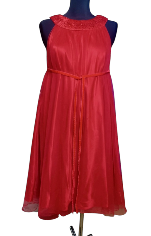 Праздничное, изысканное платье красного цвета. Фасон платья трапеция, поверх украшена красным фатином и бисером. Идеальное решение для любого праздничного события. Подойдет на размер М,L Пог 60 Длина 88/94(фатин)