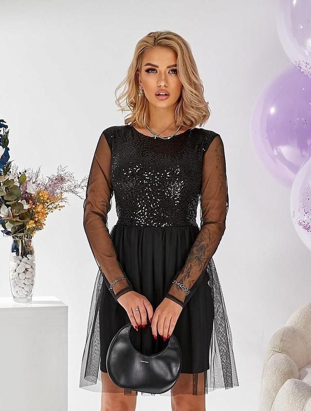 🔸Платье нарядное с блестками🔸 ⚡ Код: 1369 ⚡ Размеры: 34, 36 евро (42, 44- наш) ⚡ Ткань: пайетка + дайвинг + сетка ⚡ Цвета: черный ⚡️На модели 34 размер по бирке (наш 42 размер) ⚡️Пошив: фабричный, люкс-качества, посадка изделия идеальна⭐️⭐️⭐️⭐️⭐️