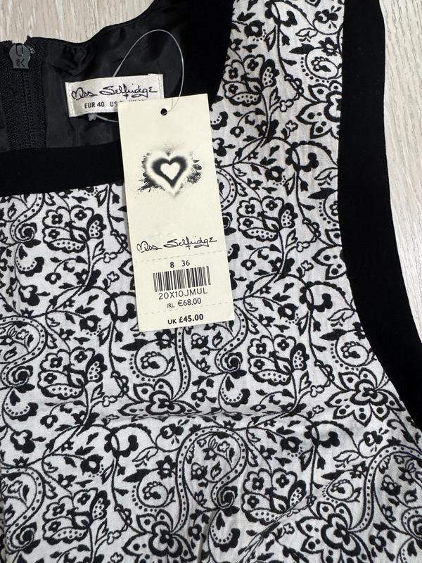 В наличии красивое платье фирмы MISS SELFRIDGE. Размер указан 8. Состав: 58% коттон, 40% полиестер, 2% эластана...ткань немного похожа на гобеленовую. ПОГ-45, длина платья-87, полуобъём талии-38, ПОБ-48, плечи-35.