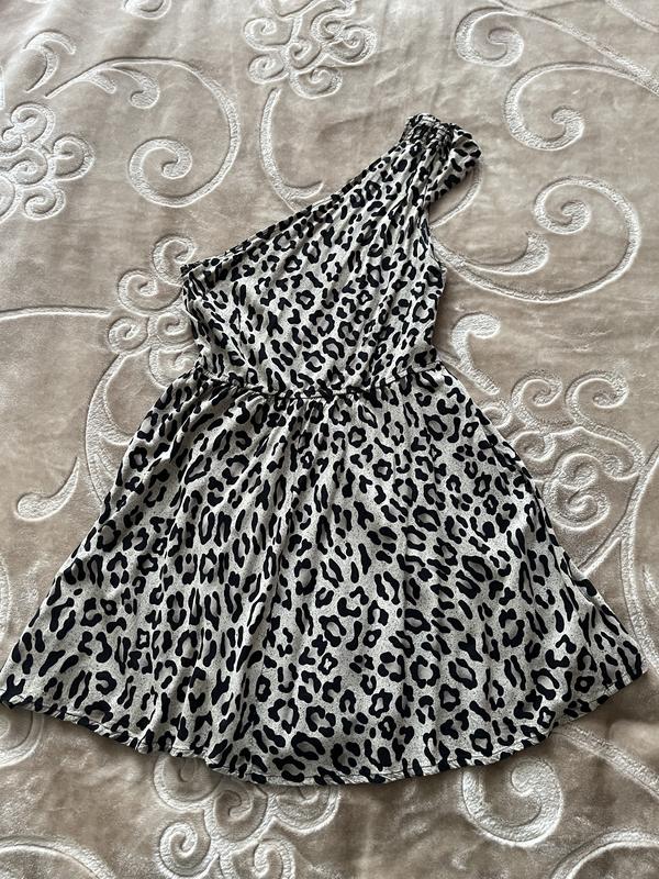 Короткое платье в трендовом леопардовом принте, серое с черным леопардом, в очень хорошем состоянии. Материал приятный к телу.Размер xs-s, детально замеры отправки.