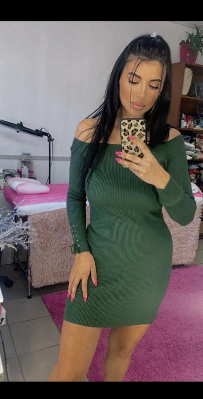 Зелена сукня в рубчик