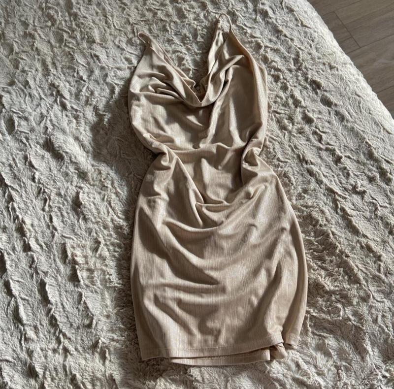 Вишукана сукня бєжевого кольору з відблислисками. Має підкладу,не просвічується. Заміри на фото. Розмір 38, але маломірить 36. Дивіться заміри❗️