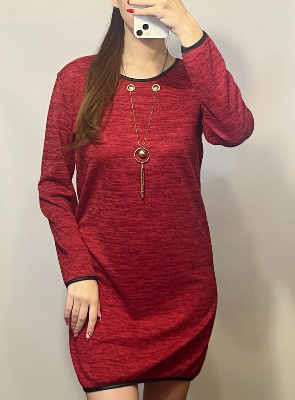 Свободное красное платье с вискозой с фурнитурой с длинным рукавом