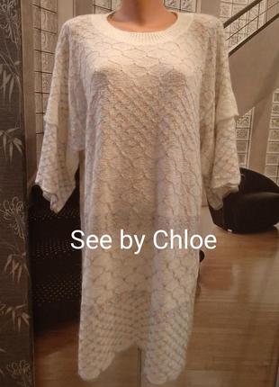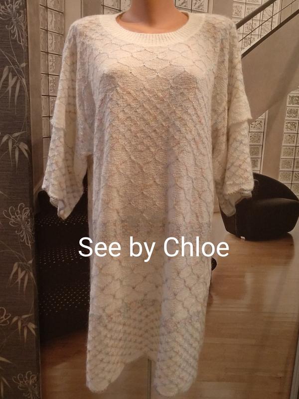 See by Chloe линейка французского бренда прет а порте Chloe, фасон оверсайз, линия плеча опущена, за счет этого рукав длинный, прямоугольная модель рукава, очень красивая и нежная сложная вязка, составная 37% акрил, 30% хлопок, 25% полиамид, 3% альпака, 3% вискоза, 2% металлик, размер S, замеры на фото