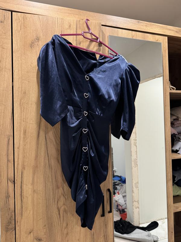 Невероятное платье, очень красиво ложится по фигуре, декорировано перед, заду молния, в плечах есть поролоновые вставки, которые формируют интересный силуэт