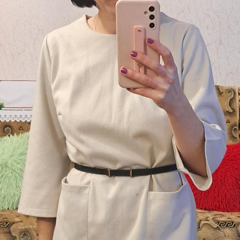 Классное платье. Теплое, удобное, на все случаи. Размер указан 50. Я же его несколько раз оделла на М под поясок. Представлено на фото. Длина 90 см, грудь 51 см, рукав 46 см Платье в идеальном состоянии, о покупке не пожалеете)