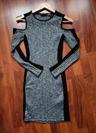 Очень стильное удобное платье. Вставки рубчик - подчеркивая фигуру. Открытые плечи