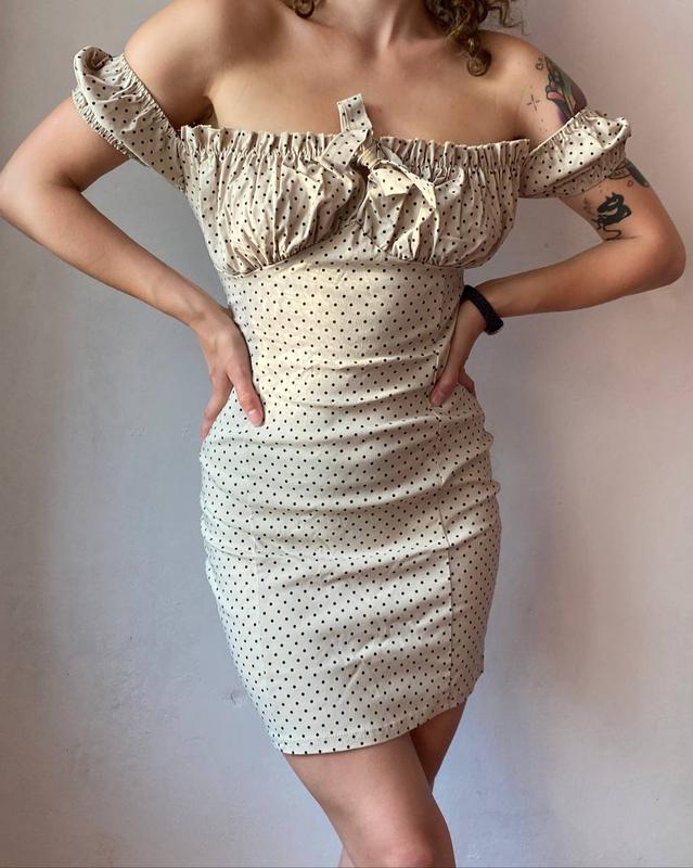 Нереальное платье в горошек Від isawitfirst •стан:идеал •размер 896/eufr 34 На фото одето на s Хорошо будет на xs-s 400 грн
