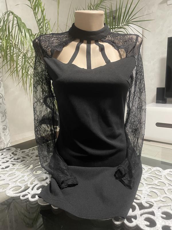 Маленька чорна сукня в ідеальному стані,стан нової. Дуже ніжно виглядає. Розмір -XS Тканина-поліестр, трішки тягнеться. Довжина -83см ПОГ - 39см (тягнеться до 45см) ПОТ -35см