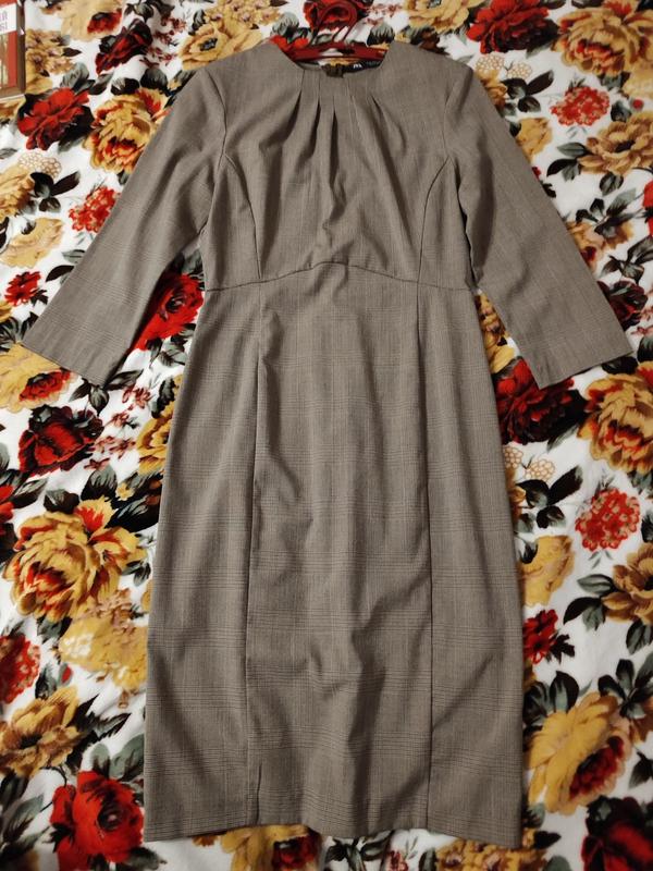 Платье в деловом стиле от ZARA, размер М, 28. Лучше подойдет на S, S-M. Рукав 3/4. Длина 101 см. Полуобхват груди 45 см, талии 35 см, бедер 46 см. Имеет подплечники. Тканина еластична, тягнеться. Стан идеален, одевалась 1 раз
