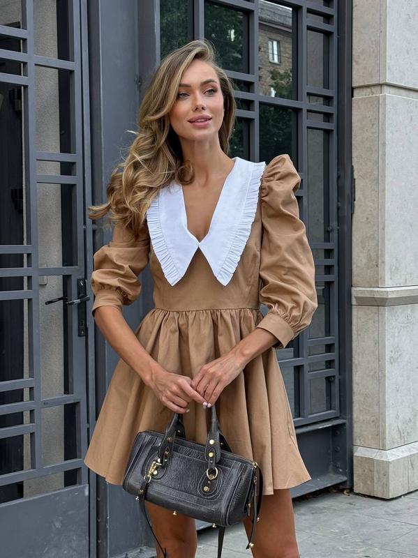 Арт 469 | Сукня SCARLET Стильное платье длины мини смотрится элегантно с очень красивым декольте, опрятной V-образной горловиной и съемным белым воротничком 💕 💦🧺Машинная деликатная стирка при температуре 30° • Тканина: бавовна • Размер: one size (42-46) • Цвет: молоко, черный, капучино Данный товар Rozetka не отправляем) Дарите за неудобства)