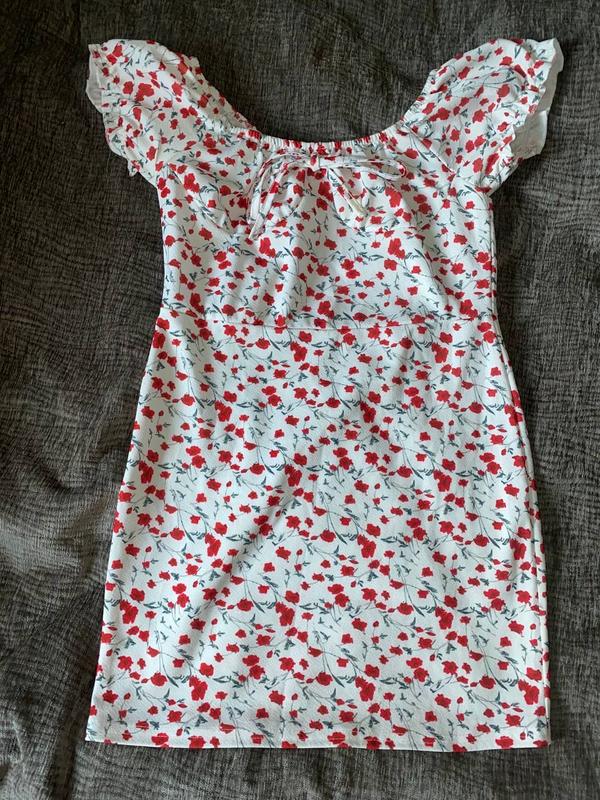 Продам літню сукню білого кольору з візерунком червоних маків. Рукава короткі, довжина сукні міні (63 см). Напів обхват талії 37 см. Має шнурівку поперлу для краси. Якщо треба - пишіть! Є торг. Відправляю олх доставкою, укр поштою та новою поштою! Всім мирного неба!