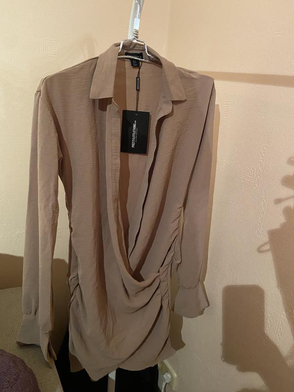 Нова з біркою. Колір дуже гарний ближче до шоколадного відтінку! Можна носити як кожен день та і на пляж так як виріз глибокий. Текстурований тканий матеріал відтінку каменю з глибоким вирізом, рукавами з манжетами в формі дзвона та міні-кроєм. Відправка в день замовлення!
