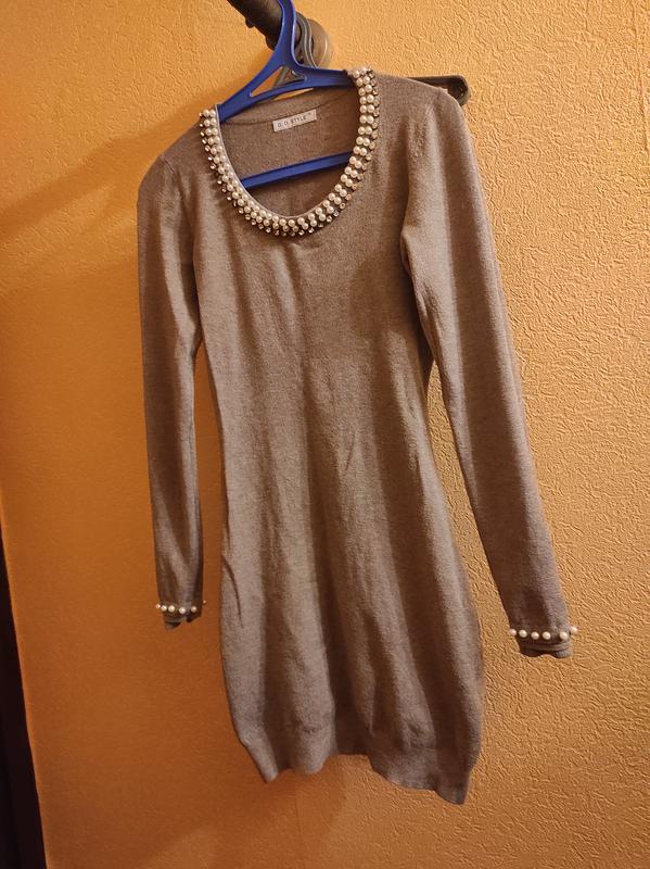 м'якеньке плаття, коротке, схоже на кашемір, з перлинками і камінцями, колір як на перших двох фото - капучіно
