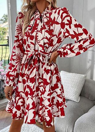Новая, последний экземпляр! Стильное платье, рукав длинный, ткань очень приятная на ощупь, не мнется, не просвечивает. Есть пояс в комплекте Размер указан L, можно на M-L Ширина под подмышками 50 см Ширина по талии 36 см (резинка) + пояс Ширина плечей 40 см Длина: 91 см Длина рукава 63 см 100% Полиэстер