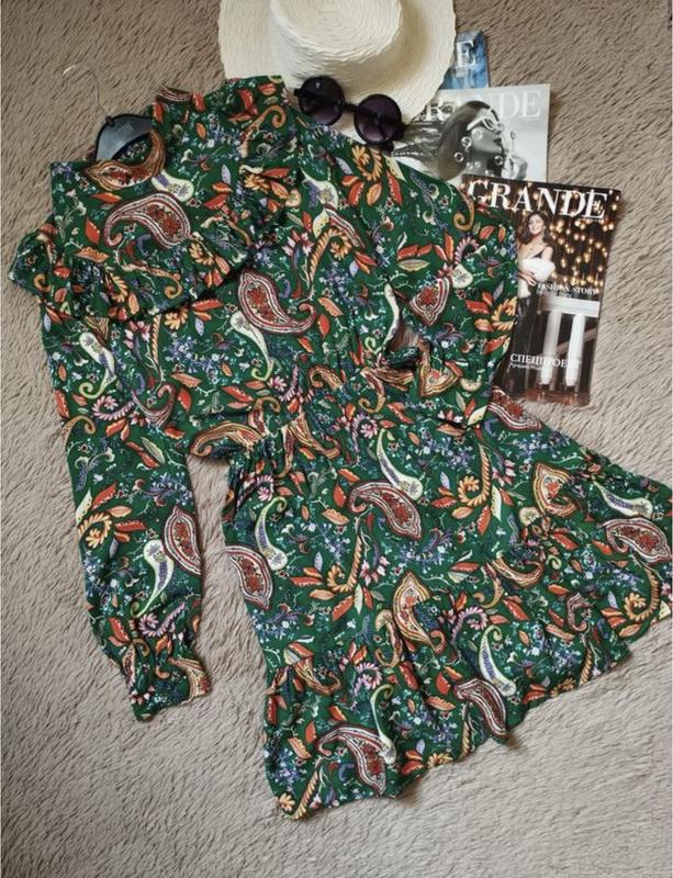 Купила здесь на шкафе, одевала два раза! В отличном состоянии, есть затяжки сбоку у шва (последняя фото), не очень заметно, в цене учтены. Красивое платье с воланами. Ткань легкая, почти не тянется. Выглядит супер 😍 Размер указан 10/38/М, но смотрите по замерам Замеры (полуобхват) : Грудь 49 (тянется до 52) талия 29-49(на резинке) рукав 64 стегна 58 Длина от плеча 92