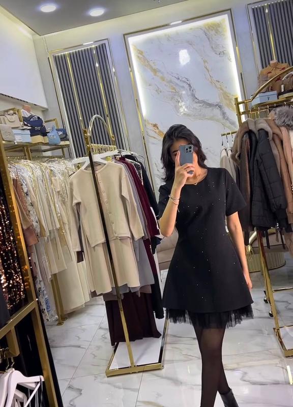 Модель 808 Женское платье Размерный ряд S,M,L,XL Платье состоит из двух элементов, верхняя основа из костюмноши ткани с камнями и потайной юбки из софта, низ которой сетка Очень классная и красивая модель Супер качество Цена 839 грн