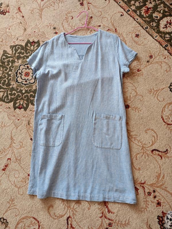 фасон прямий. тканина бавовна размер не указан, ориентируйтесь по замерам длина от плеча до низа 92 см по груди 55 см