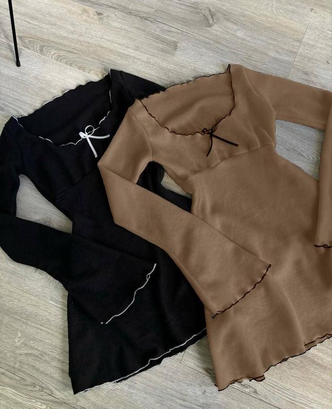 ♥️НОВИНКА♥️ Романтичное платье декорировано нежным бантиком, оно влюбляет в себя с первого взгляда 🫶🏻 Сукня Мод: br 342 Размер: 42-44,46-48 Тканина: Ангора рубчик Цвета: черный, беж, красный Качество отличное 🔥
