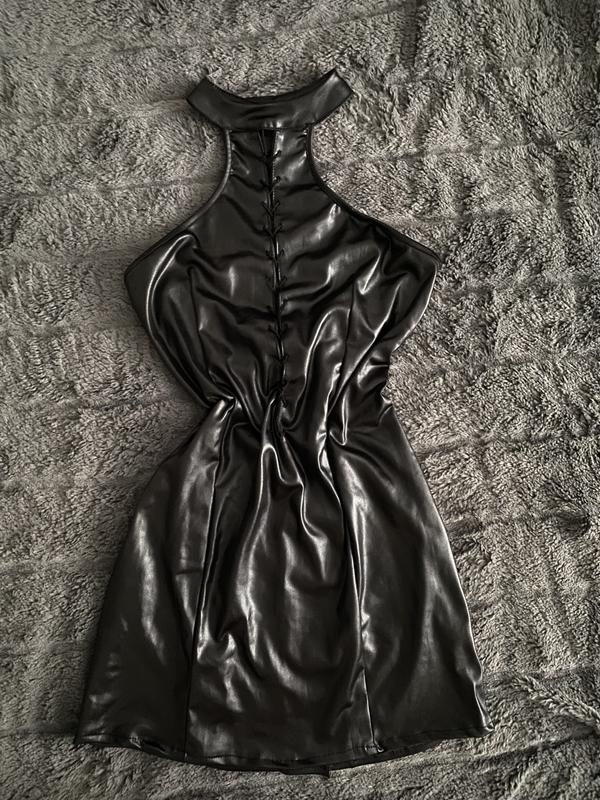 Платье мини кожаное