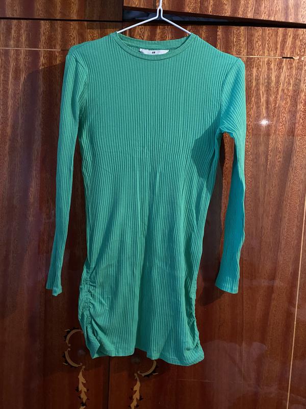 Платье зеленого цвета, в рубчик, размер XS,S. В отличном состоянии, одевала пару раз