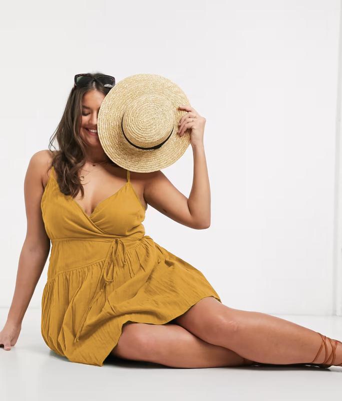 Оригинальное платье/сарафан в горчичном цвете от бренда ASOS DESIGN. Asos Curve – это одна из линий одежды молодежного британского бренда Asos. Линия предназначена специально для полных девушек, которые хотят всегда одеваться стильно и современно. Платье изготовлено из воздушной хлопковой ткани, очень приятной для тела. Модель на тонких регулируемых бретельках. Дизайн на запах с узкими длинными завязками. Ширину можно регулировать, что очень удобно. Двойной слой ткани, пышная юбка с подкладкой. Указан размер 18/46 (XXXL). Замеры: ПОГ 54 см (по спинке), четких ограничений нет. Талия регулируется по вашему желанию. Бедра свободны. Длина от плеча до низа примерно 84 см (зависит от длины бретелек). Состав: 100% хлопок, подкладка 100% хлопок. Состояние новой вещи.