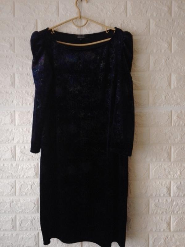 Оригинальное бархатное платье темно синего цвета,"звездочное небо",с рукавами фонариками. Полу объем груди -47(с натяжкой+4см). длина рукава -54см. Длина платья -92см