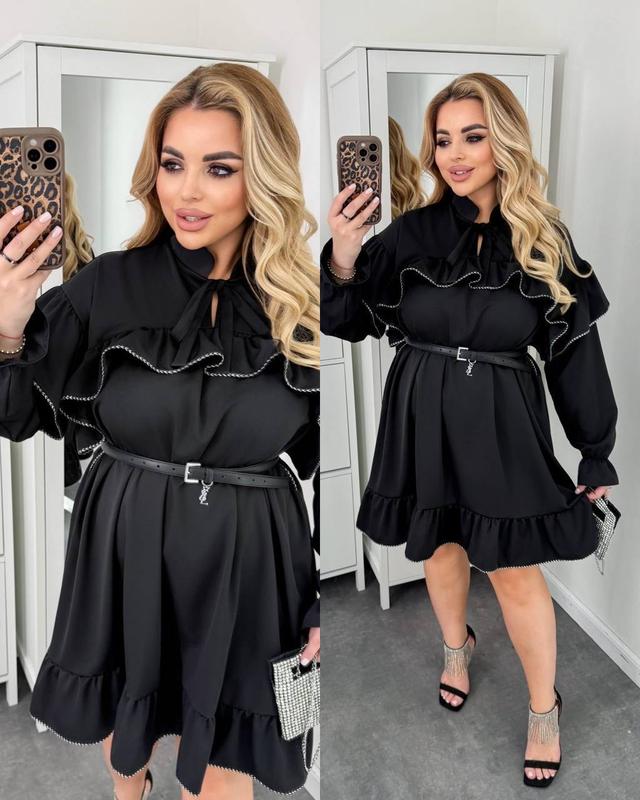 New collection Жіноча сукня 👗 Дуже гарна та нарядна сукня, з стильними у цьому сезоні рюшками по рукавам та переду. Стильна та дуже елегантна сукня) Супер якість 😍 Мод. 400 Розмір : універсальний 50-58 ( ОГ 130 см) Тканина: костюмний тіар ( ніжна та приємна) Довжина 98 см. Пояс можно придбати окремо 200 грн💳