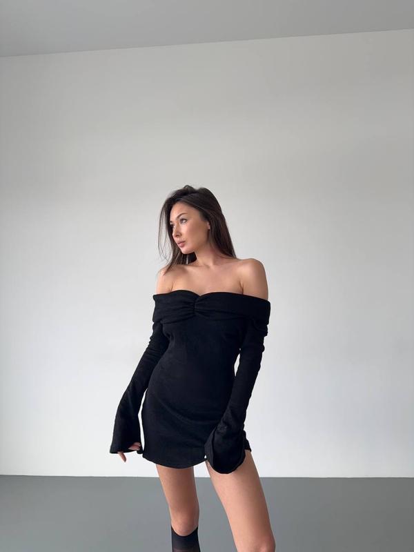 Сукня коротка з відкритими плечима та довгим рукавом
