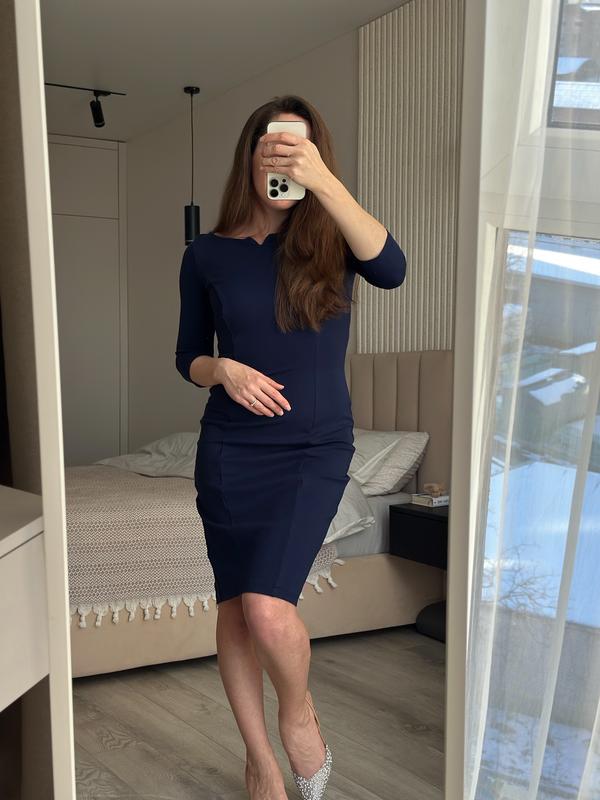 Приталена синя сукня Длина в колено, к низу зауженная, сзади разрез Размер: xs Состояние: идеальный( без каких-либо дефектов)