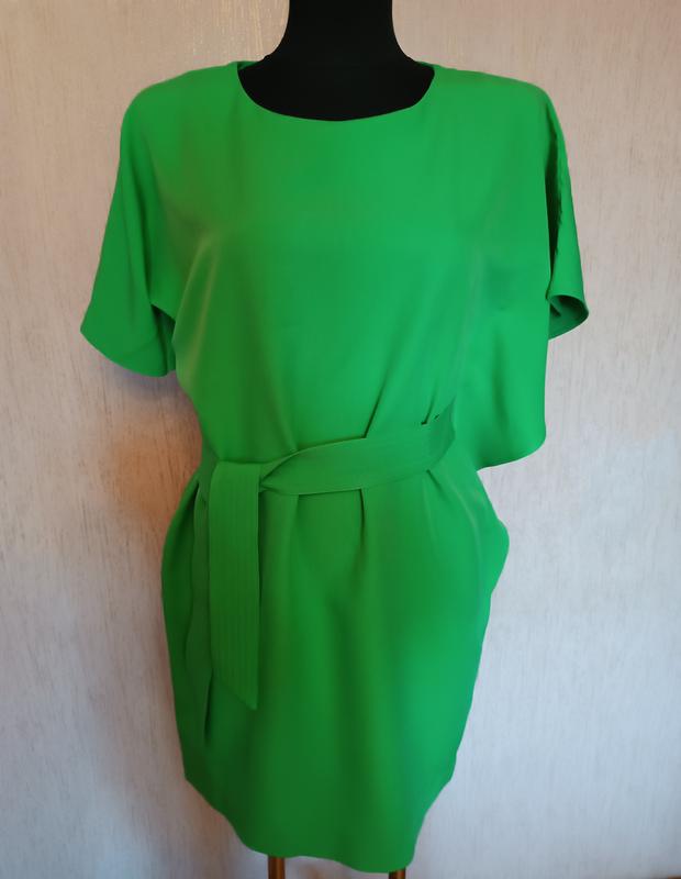 Платье яркое, зеленое, идеальное состояние. Состав: полиэстер+ эластан. Замер:Длина -90 грудь 53, там свободно, рукав разлетайка талия-45 бедра-54 по наборке-40 размер, есть один карман и идет широкий пояс.