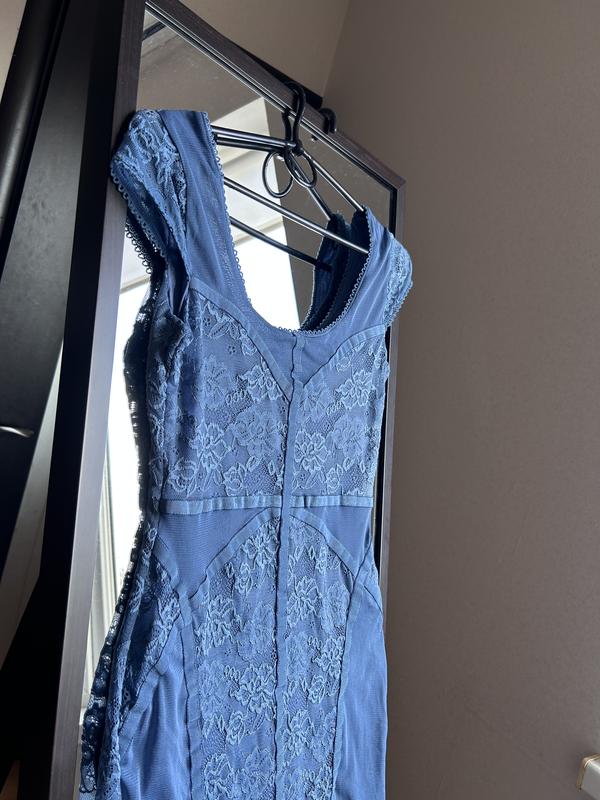 Ніжна мереживна сукня по фігурі H&M Розмір 38, на 36 теж підійде На підкладці (не просвічується) Довжина 79 Пог 41 Пот 31 Поб 40 Тканина еластична і дуже добре тягнеться! Стан: як нова