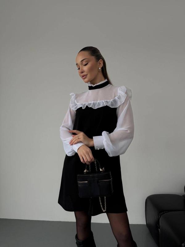 Сукня з трендовым поєднанням чорного та білого 🔥🔥🔥 Сукня Модель 168 Тканина: креп дайвінг, шифон Розмір: 42-44, 46-48, 50-52 Колір: чорний з білим Ціна: 1090грн. 🔹 Від романтичних вечорів до святкових заходів — ця сукня стане вашим надійним союзником в створенні незабутніх образів. Обирайте стиль, обирайте якість — обирайте нашу чорну сукню з легким білим шифоном та рюшиками! 🖤 Якість 💣 Виміри Модель 168 Розмір 42-44 Напівоб'єм грудей 44 см, напівобʼєм стегон 56 см, довжина рукава від плечового шва 63 см, довжина виробу по спинці 87 см Розмір 46-48 Напівоб'єм грудей 48 см, напівобʼєм стегон 60 см, Довжина рукава від плечового шва 63 см, довжина виробу по спинці 87 см Розмір 50-52 Напівоб'єм грудей 52 см, напівобʼєм стегон 64 см, довжина рукава від плечового шва 63 см, довжина по спинці 90 см Виміри по виробу. Можлива похибка 1-2см