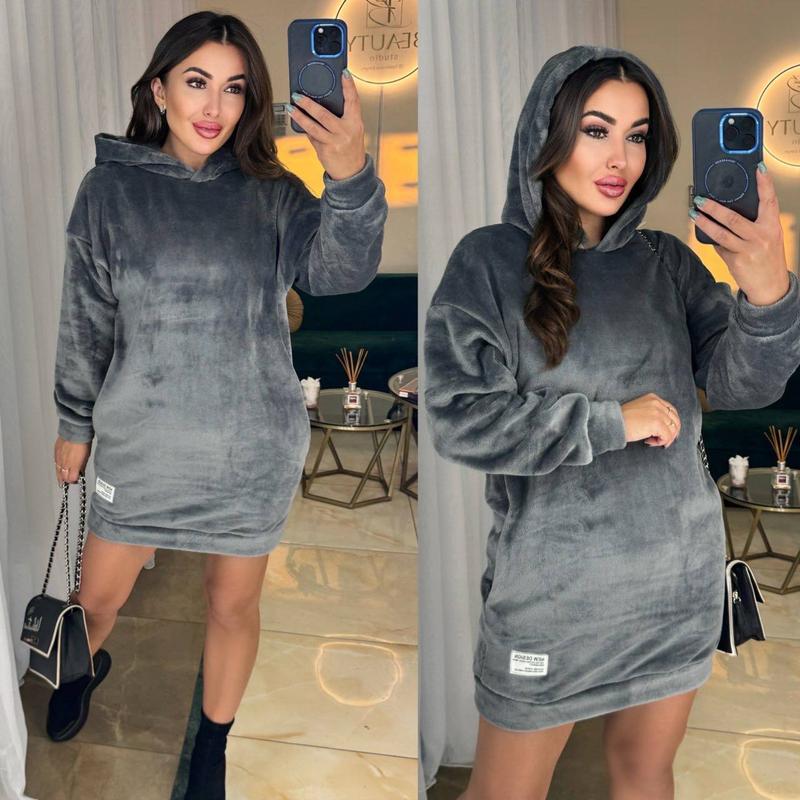 Сукня-туніка Модель 2069 Розміри: 42-46, 48-52 Тканина двохстороння махра (дуже м’яка та тепла) 💙Ціна 710 грн💙 Кольори: лаванда, графіт, чорний, мокко