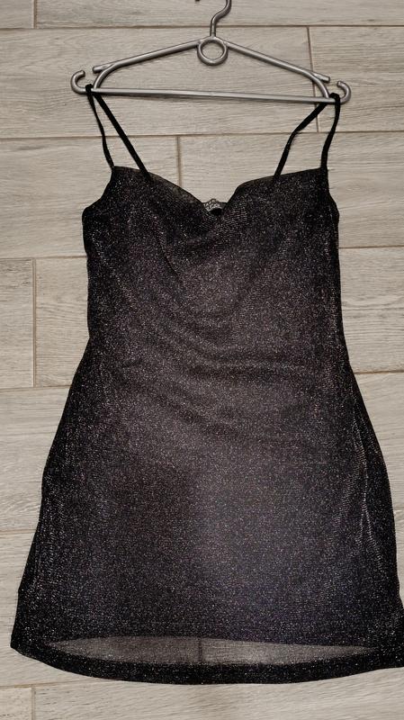 черное блестящее металлическое мини платье