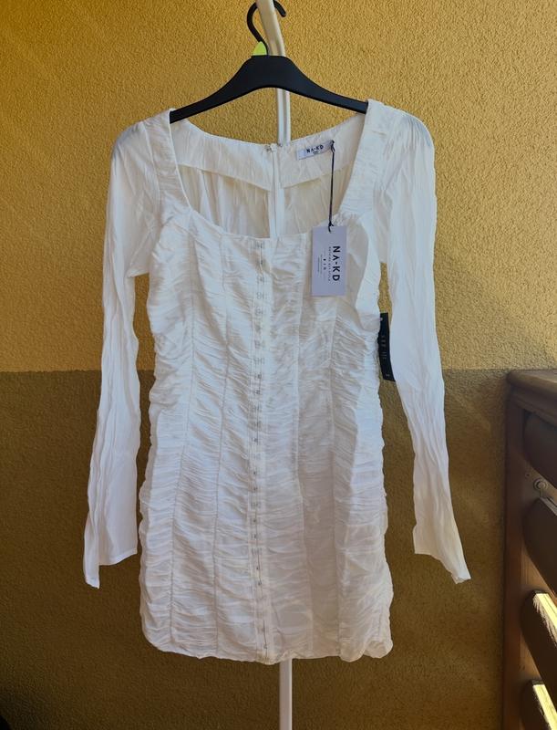 Платье NA-KD Чрезвычайно красивое🤍 Спереди на застежках, сзади на молнии. В плечах фиксируется с помощью силиконовой наклейки (ленты) с внутренней стороны. Новое, с биркой🏷️ Качество🔥🔥🔥 Размер по набору 38 📏замеры: ширина под проймами рукавов 45см, длина рукава от плеча 67см, длина платья от плеча 80см, ширина в бедрах 90-94см