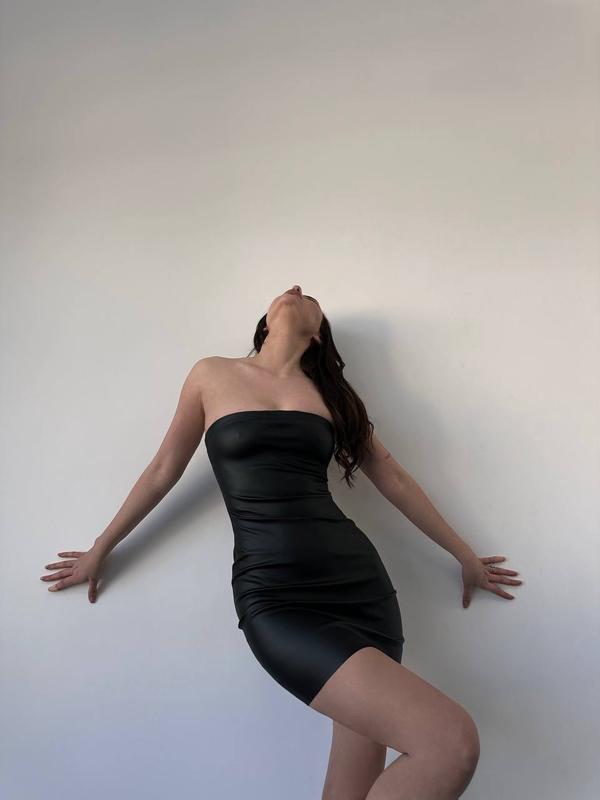 ФОТО РЕАЛ 💖 Сукня ▪️Тканина: еко шкіра ▪️Розміри: 42-44; 44-46 ▪️Кольори: чорний Пояс с баскою знімається. Застібається на кнопки.