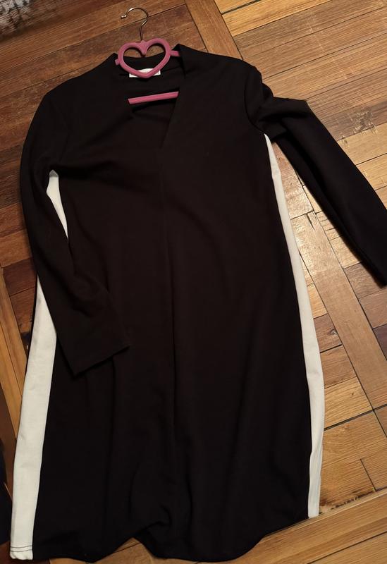 Платье Mango. Классно выделяет силуэт, за счет белых вставок. Тканина плотна. Размер с-м.