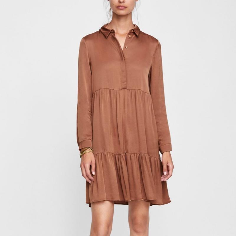 Атласное женское платье с пуговицами
