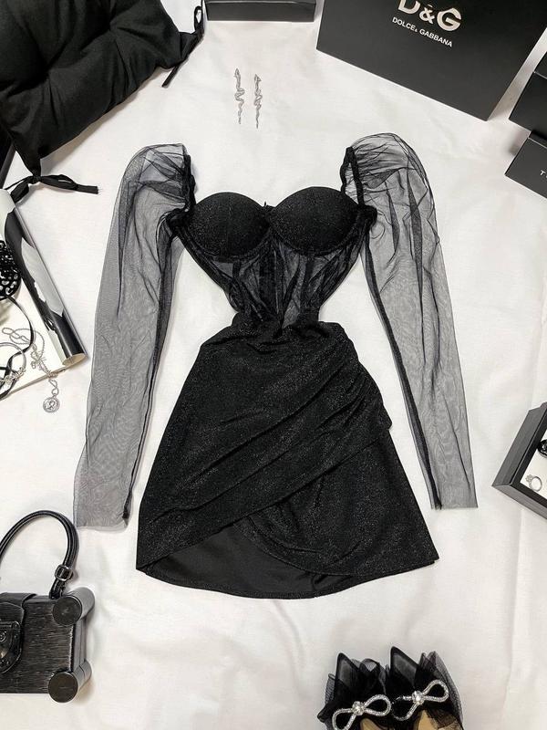 New🩶 В наявності✔️ Сукня Реальні фото🔴 🔘Мод md 1018 🔘Розміри - 42-44, 46-48 🔘Кольори - чорний, срібло 🔘Тканина - люрекс + чашки 🔘Ціна 960 грн Ідеальна твоя сукня✨ З імітацією корсету, з чашками у ліфі. На спині потайна змійка. Гарно виглядає на фігурі.