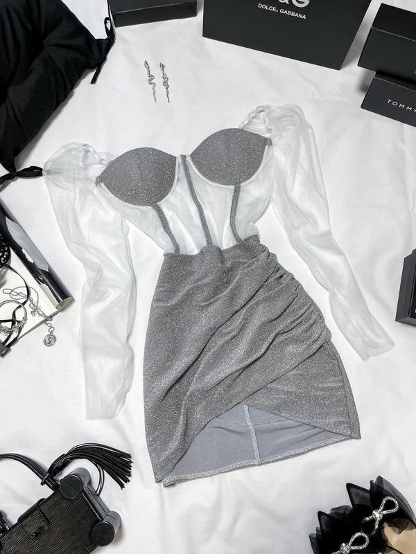 New🩶 В наличии✔️ Сукня Реальные фото🔴 🔘Мод md 1018 🔘Размеры - 42-44, 46-48 🔘Цвета - черный, серебро 🔘Тканина - люрекс + чашки 🔘Цена 960 грн Идеальное твое платье✨ С имитацией корсета, с чашками в лифе. На спине потайная молния. Красиво смотрится на фигуре.