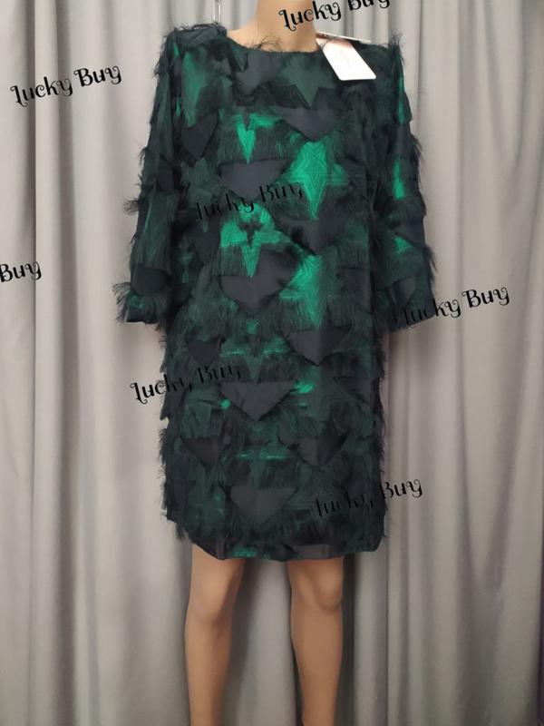 Код 3318(25) Изумрудное коктейльное мини платье Женское мини платье. Цвет черный с изумрудным. Принт звезды. Бахрома по изделию. Есть подклад. Полиэстер Размер 46/48 Замеры: 46/48 Плечи-38 см Пог-51 см Пот-52 см Но стегон-55 см Рукав-43 см Длина-88 см