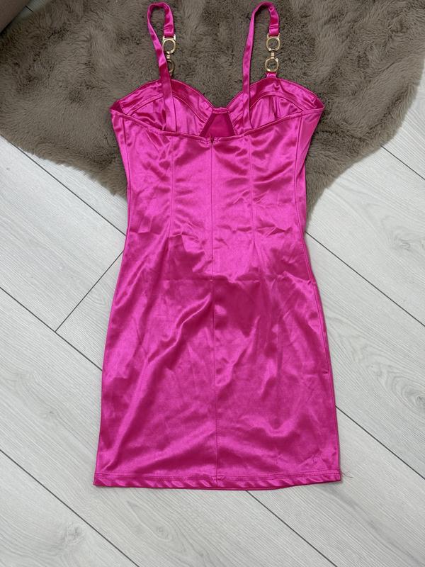 Очень красивое платье в ярко-розовом цвете, красиво подчеркивает талию и декольте