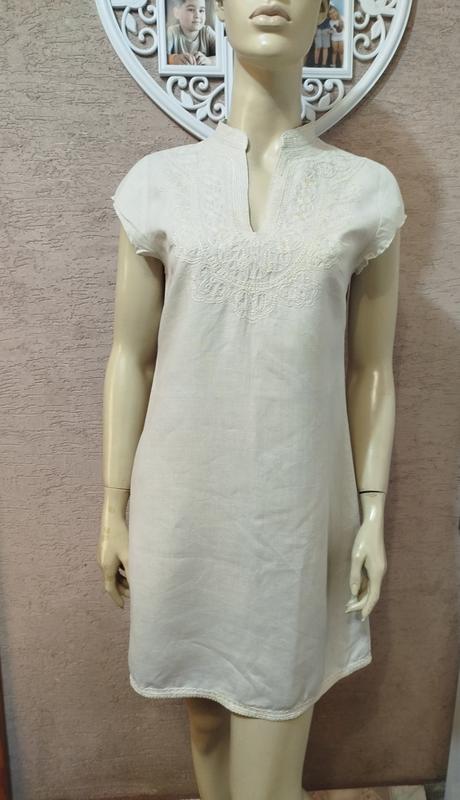 Очень классное и качественное льняное платье в отличном состоянии. Длина изделия по спинке от плеча 89 см, полуобхват груди 48 см, полуобхват талии 45 см, полуобхват бедер 54 см. Ткань лён, плохо тянется. Модель 5674