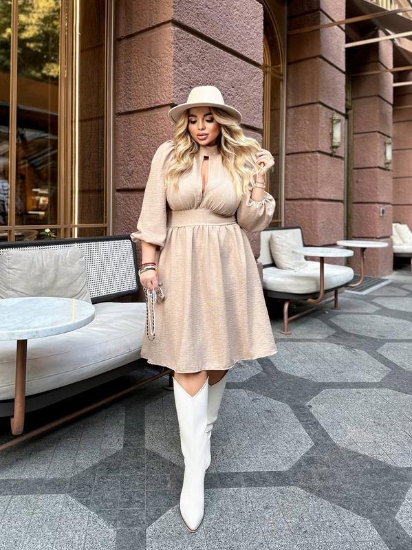 Сукня код: 230 Тканина: льон жатка. Кольори: чорний, червоний, бежевий. Розміри: (50-52) ОГ 104, ОТ 86, рукав 60, довжина 105. (54-56) ОГ 112, ОТ 96, рукав 60, довжина 108 (58-60) ОГ 118, ОТ 108, рукав 60, довжина 110