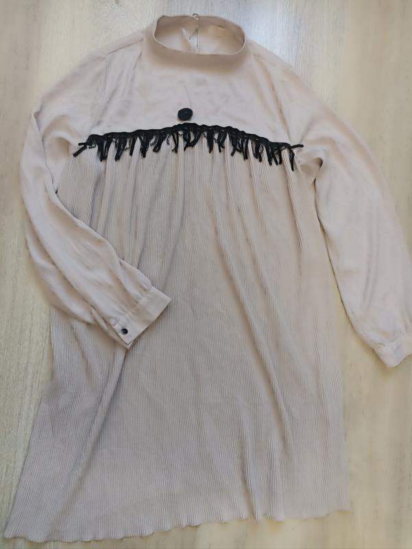 платье бежевого цвета, спереди плиссе, идеально подходит для беременных