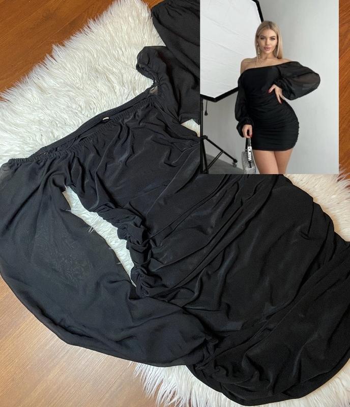 Платье черного цвета, с шифоновыми рукавами Рукава можно носить спуская с плеча Размер М