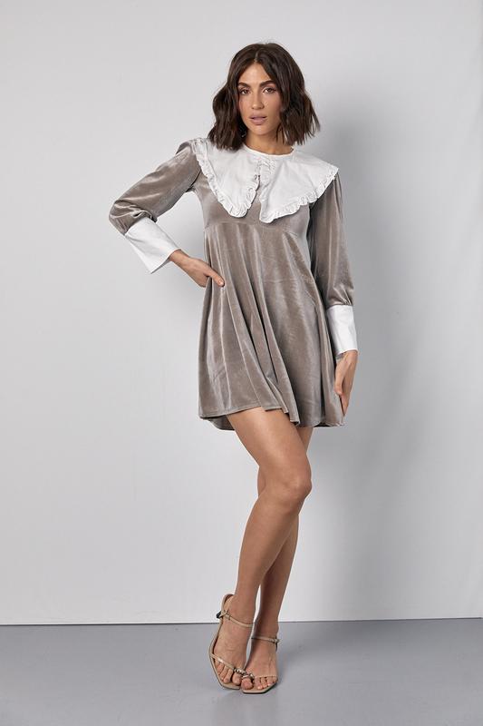 Женское велюровое платье с оригинальными манжетами и воротником