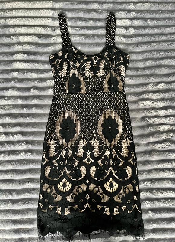 Красивое платье с кружевом, в идеальном состоянии, одевалось один раз. Подкладка бежевая. Ззаду на замочку Длина по внутреннему шву 70 см Длина лямок спереди 14 см Ширина под руками 37 см Полу обхват талии 34 см Полуохат бедер 41 см Подойдет на грудь 75В, есть вытачки Размер указанного С