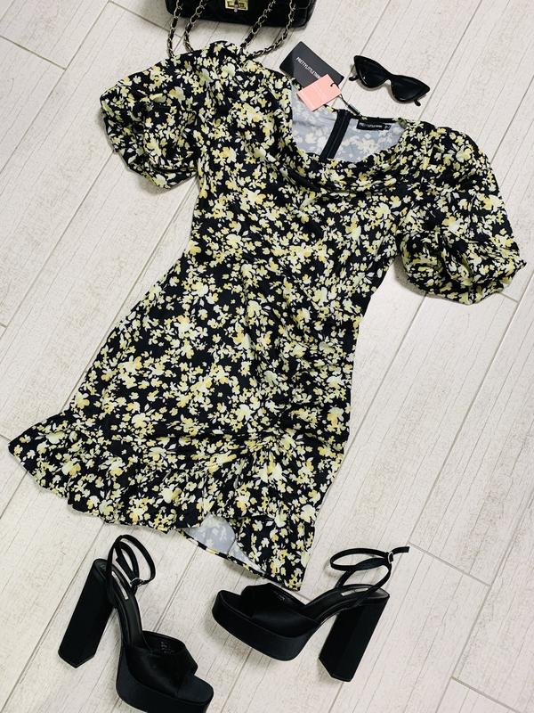 Нова жіноча сукня міні-довжини в квітковий принт з рукавами-баф від pretty little thing
